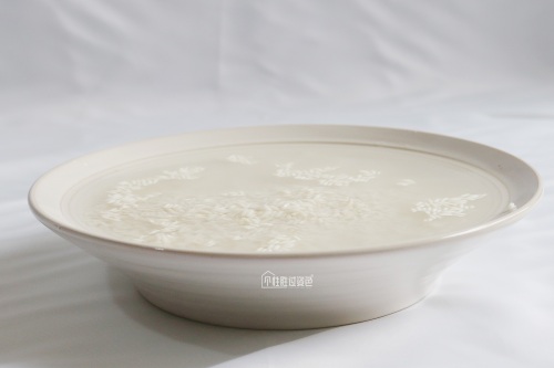 6.取一个大碗,往碗壁上涂一层猪油,中间摆上干果,四周摆一圈红枣