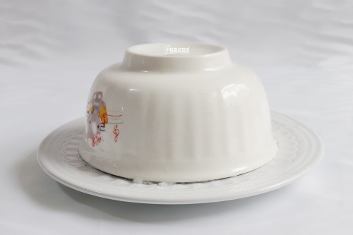 8.有时不脱模是因为碗口边的糯米粘住碗口了,所以拿小刀尖轻轻沿碗沿划一圈,将碗口粘住的米和碗分开一下,马上整个就流下来脱模了。