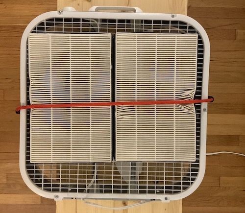 这是Dynomight先生实际制造的DIY空气净化器。只需将长度为32厘米x宽22厘米x厚度5厘米的HEPA过滤器(35美元/2张 )连接到盒形方形风扇的前面(19美元元)。组装仅需 30 秒。过滤器的尺寸与箱形风扇的尺寸不匹配,它是一个手工制作的空气净化器,使绳子缠绕起来,部分地方看起来不够平整。