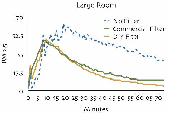 一系列实验表明,DIY空气净化器具有优异的性能。此外,由于DIY空气净化器中使用的过滤器面积很大,因此似乎更换过滤器的频率可能低于市售空气净化器的频率。