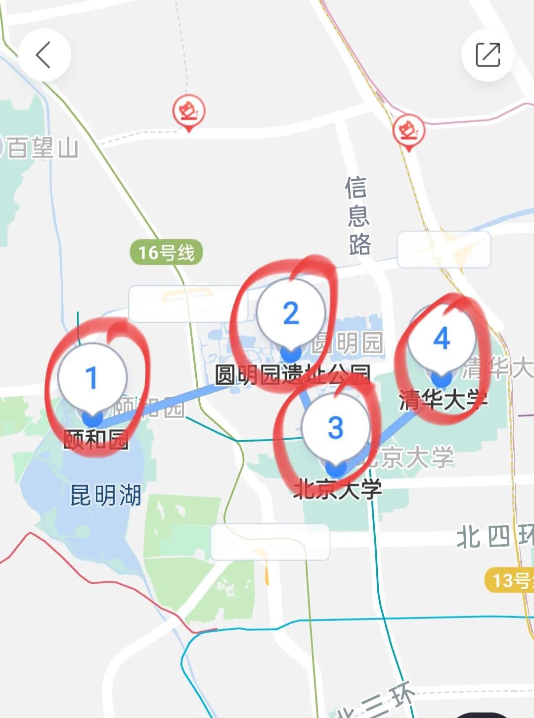 Day5:颐和园3-5小时,圆明园2小时,北京大学2小时,清华大学2小时