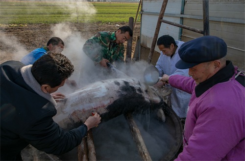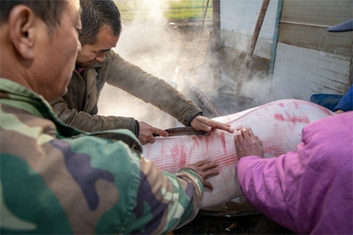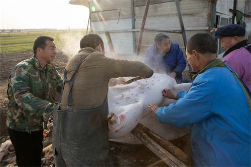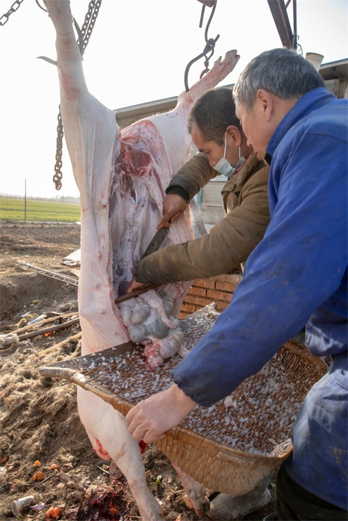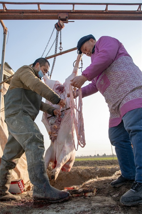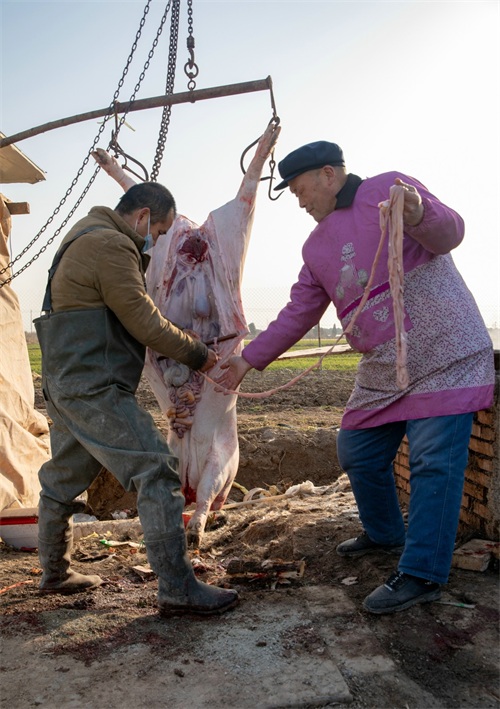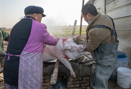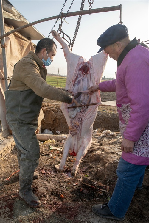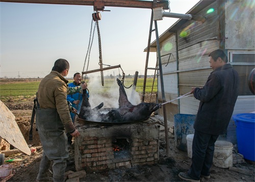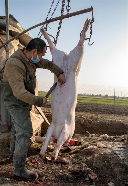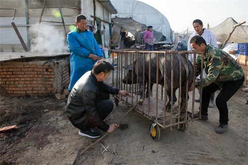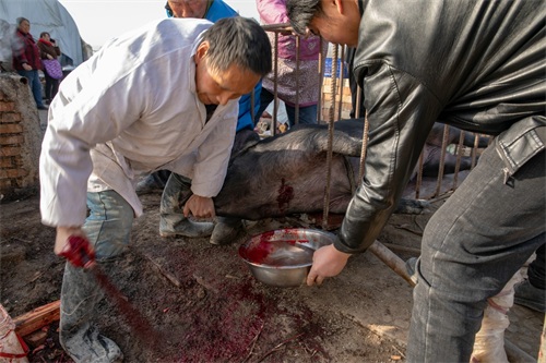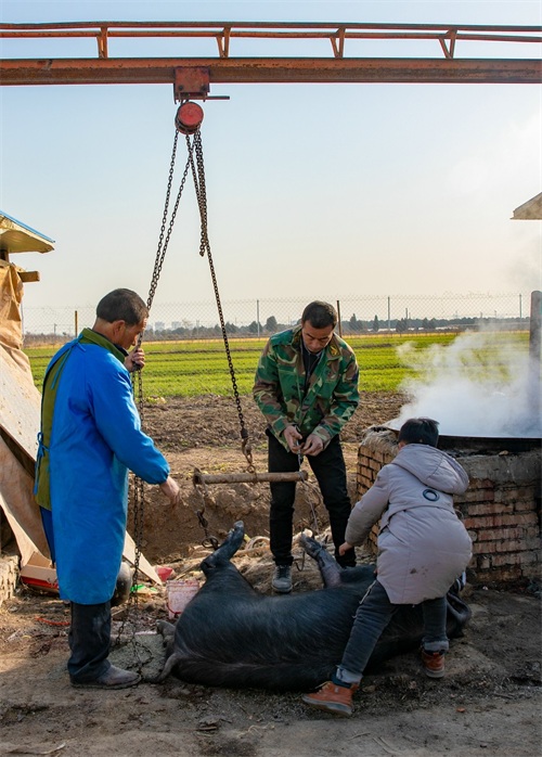 2021年2月2日,农历腊月二十一,我前往关中某地目睹了杀猪的全过程。这里的风俗是腊月二十后开始杀猪,具体时间要挑选黄道吉日,以期来年五谷丰登,生活美满;每次杀猪人员由四五个人或七八个人组成不等,经过9个环节,持续1个多小时,便把一头鲜活的生猪,脱变为新鲜的猪肉。下面请跟着我的镜头,观看43幅画面,了解关中人杀猪的9个环节的全过程。