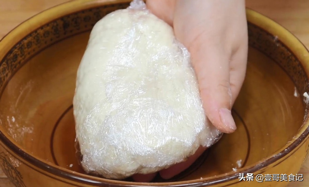 揉好后,给面团裹上一层保鲜膜,让面团饧发10分钟。