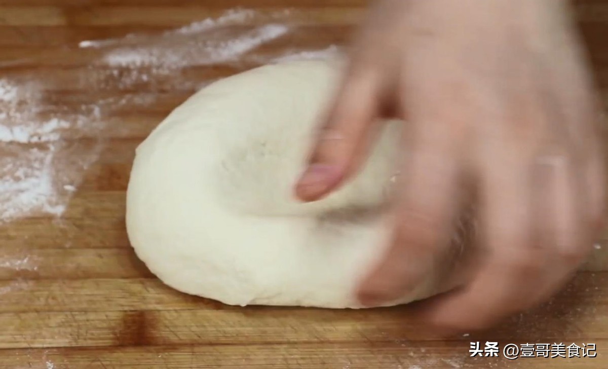 6.把面团给揉搓成一个长条,用菜刀把面条切成大小相等的面剂。取出家里的擀面杖,拿过来一个面剂,用擀面杖将它给擀开,擀成一个大大的薄面皮。用刷子蘸一些油酥刷在面皮上,然后包成包子,再把包子压扁,继续放在案板上给擀成薄面皮。把所有的面剂都这样做成饼子。