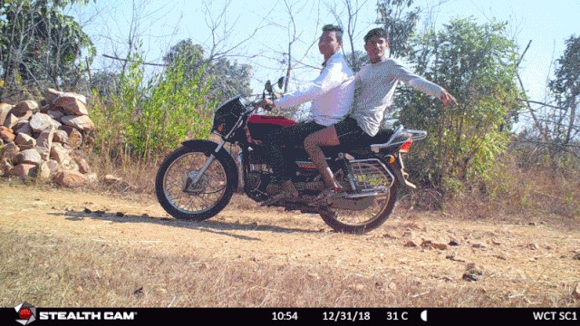 一个动作触发式相机记录显示老虎和当地人类及家畜使用同样的道路 ©Wildlife Conservation Trust