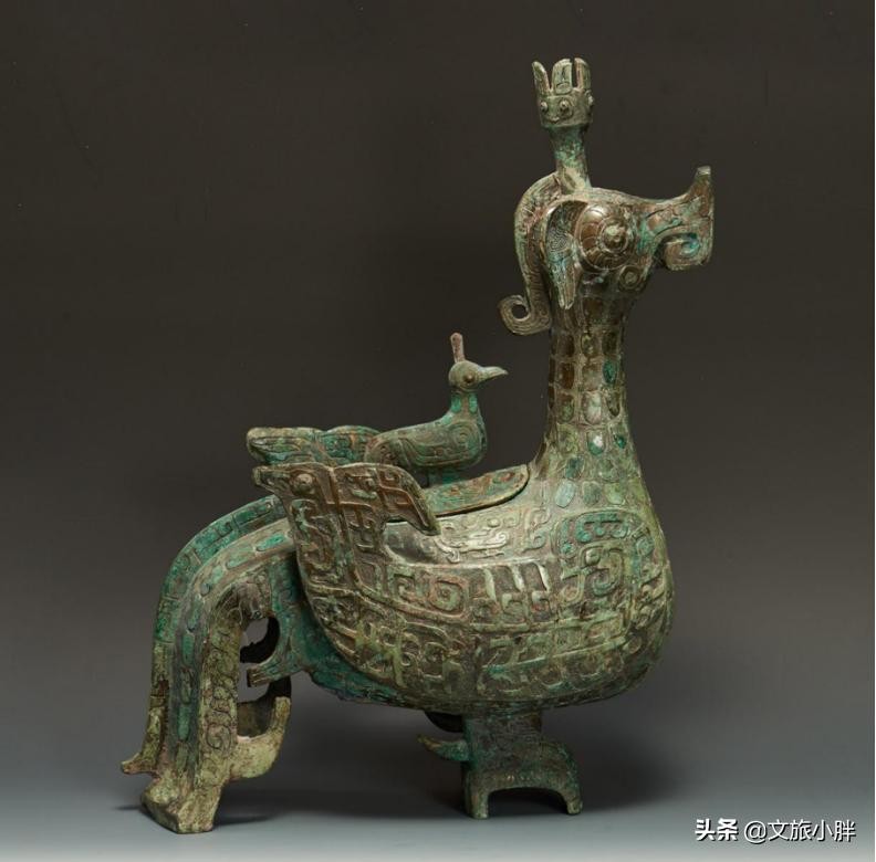 此尊通高50厘米,身长41厘米,通体表现一只昂首挺立的凤鸟形象,头顶花蕾状高冠,勾喙前伸,长尾披垂。凤鸟的背部设置圆拱形器盖,盖上挺立一只小凤鸟,一幅神情怡然的样子。大小凤鸟通身均装饰鳞状羽纹等纹样,繁复而美观。三千年前我们的祖先格外崇尚凤鸟,商人以此为图腾,有所谓“玄鸟生商”之说;周人则将之视作民族的守护神,视为祥瑞。盖内侧有2行8字铭文:“倗季乍祖考宝尊彝”,明确标明其为商周时期有名的倗氏家族某位成员所作的青铜礼器。2004年中国保利集团公司从海外回购,现藏于北京保利艺术博物馆。此尊形体巨大,胎体厚重,质地精良,保存极佳,气势不凡且造型奇特,前所未见,是迄今发现的中国最大的青铜凤鸟尊,也是目前所见最为精彩的商周青铜鸟形尊,是极为难得的艺术珍品,国宝级文物。