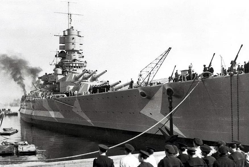 最后,再来谈谈法国海军的回应。在1938年,法国海军估计:以法国现有的造舰项目来看,到1939年,法国海军将仍强于意大利和德国。但从1939中期至1941年末将与意大利持平但强于德国。而从1942年开始将弱于意大利且和德国持平了。