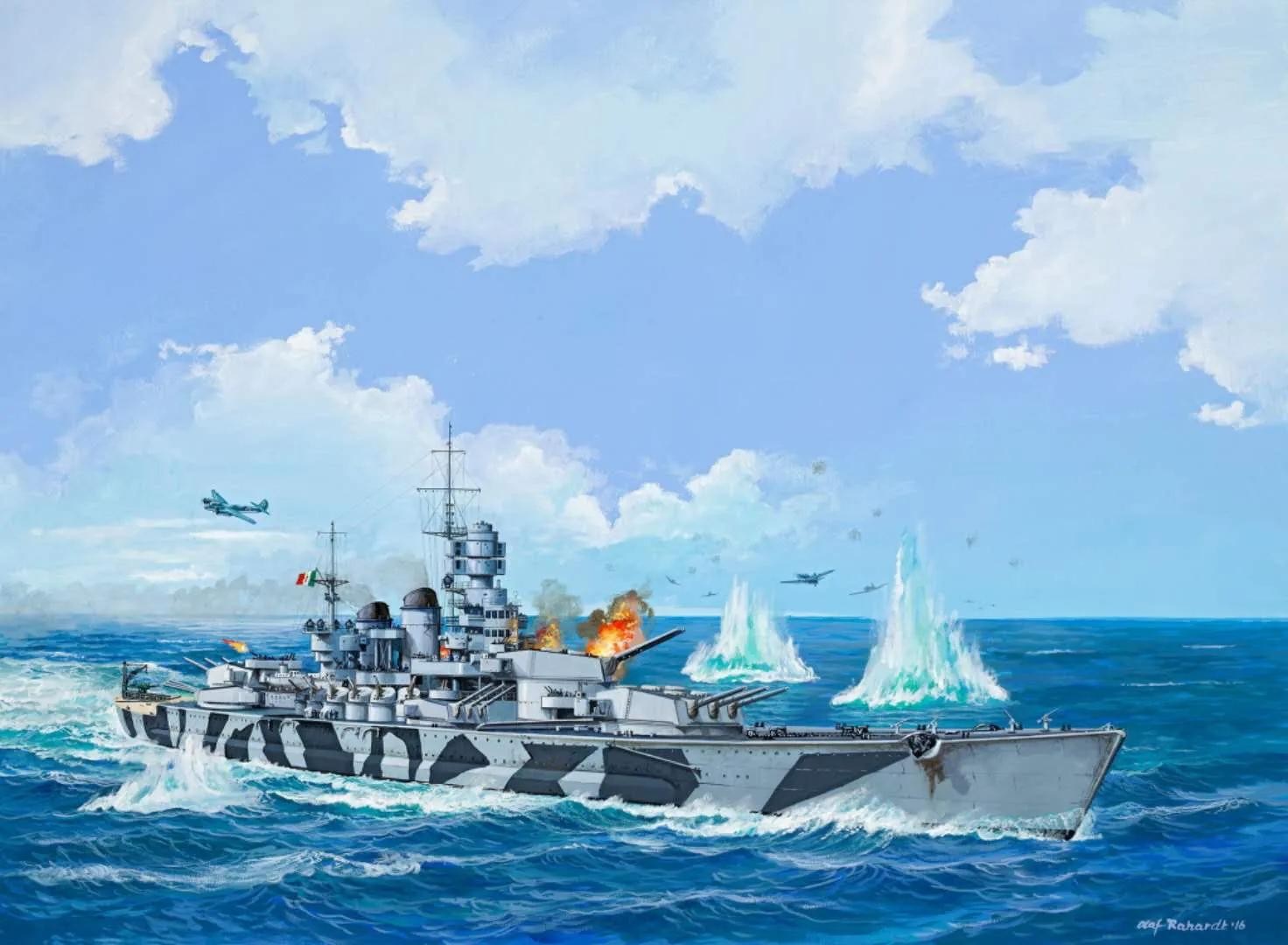 舰载机及航空设施:3架Ro 43型水上飞机和1部舰尾水上飞机弹射器(1942年年底,1-2架Ro 43型水上飞机被替换为Re 2000型战斗机)