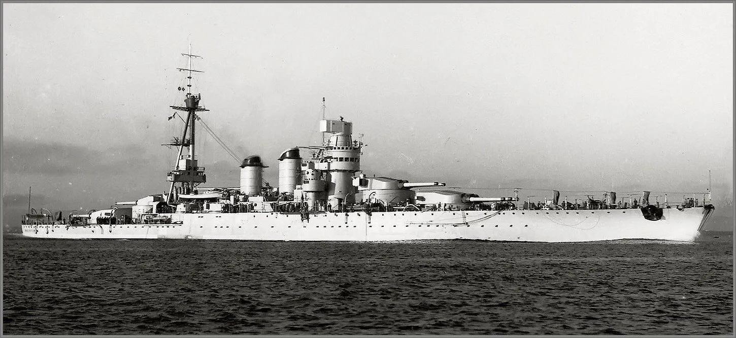 1936年4月的维内托级战列舰,可见其三号炮塔后独特的的机库设计