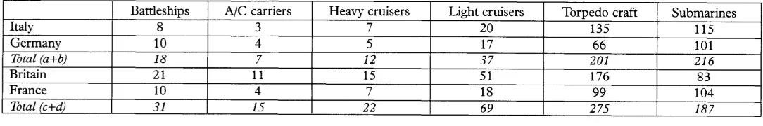 随着意大利与德国关系的升温,意大利海军在1937年9月的报告中考虑到与德国一同对抗英国和法国。他们希望德国与意大利的海军总吨位与英国和法国的海军总吨位之比维持在5:10,同时意大利与英国之比为4:10,与法国之比为7.7:10。
