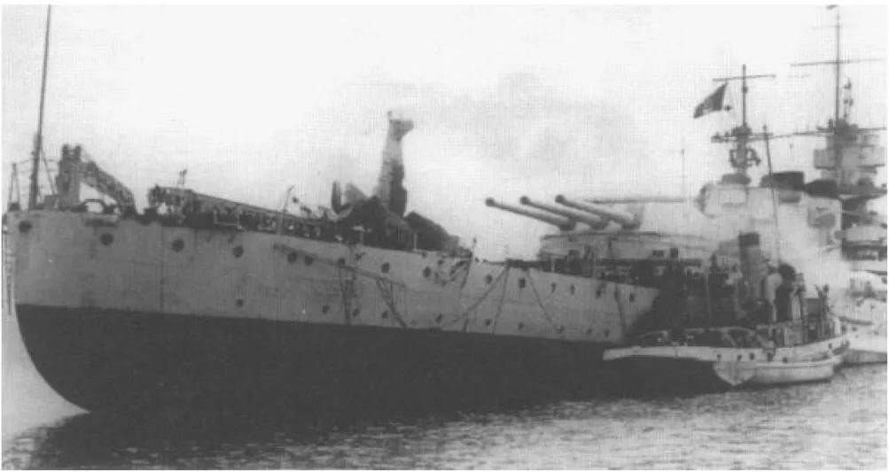 在塔兰托被炸伤的利托里奥号战列舰
