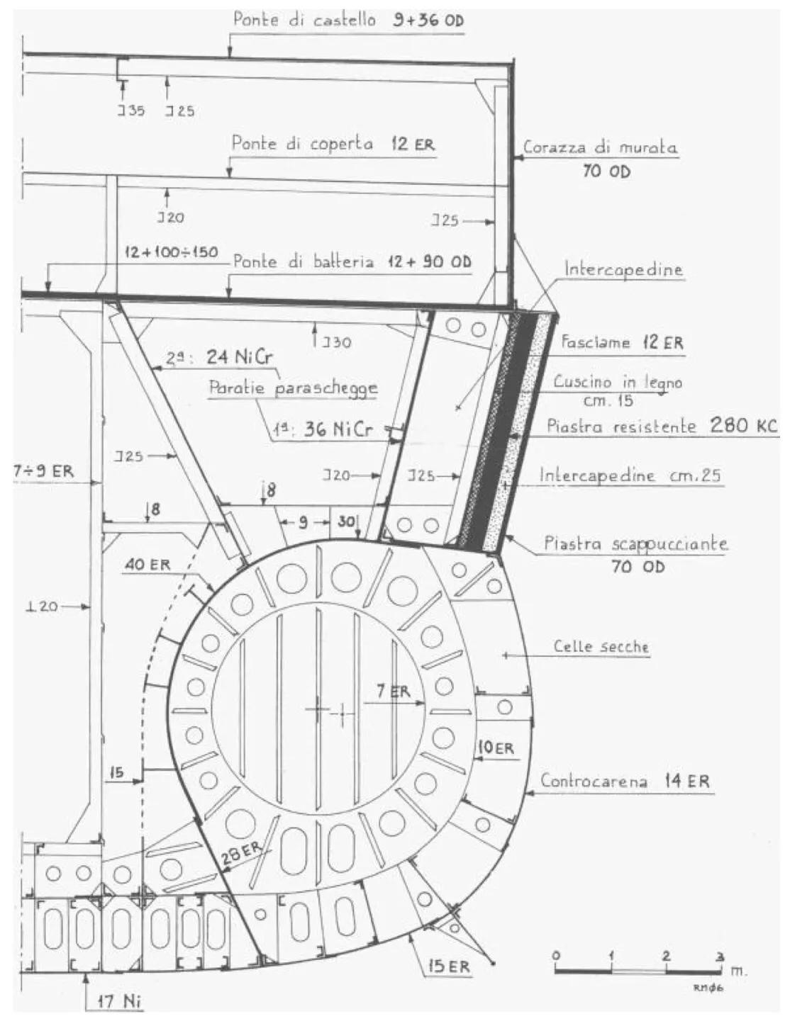 安德烈·多利亚级战列舰的水下防护系统被彻底重建。原先的舷侧防雷隔舱被替换为了全新的普列塞系统。这套独特的鱼雷防护系统同样也用在了维内托级身上,我将会专门用一期文章来介绍普列塞系统,因此在本文中就不再作过多介绍了。