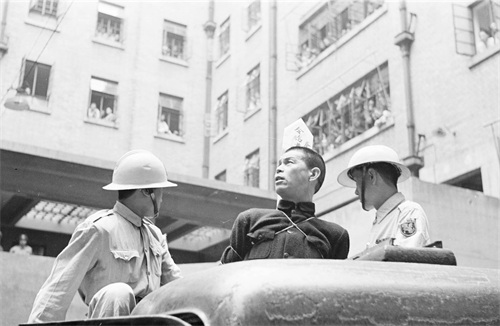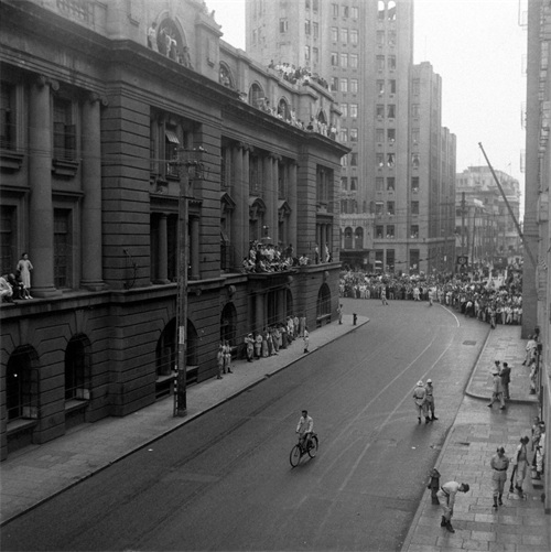 1、1949年5月11日下午,上海福州路的国民党警察总部内,每层楼上的阳台和窗户都站着看热闹的职员。