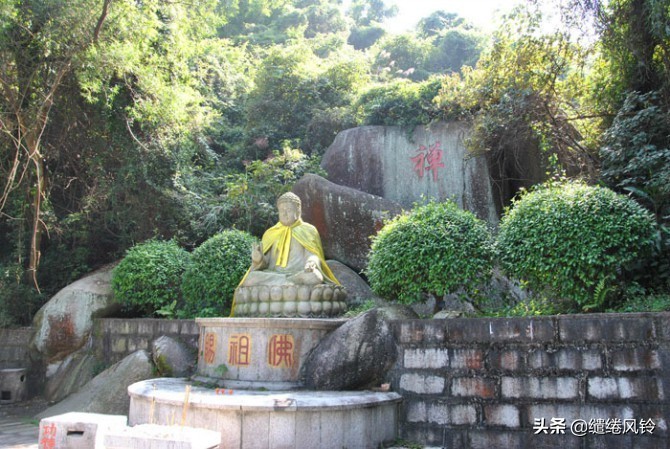 佛祖坐像,背后是一面雕刻着“禅”字的石壁,这让人不由得在心里虔诚摩拜!