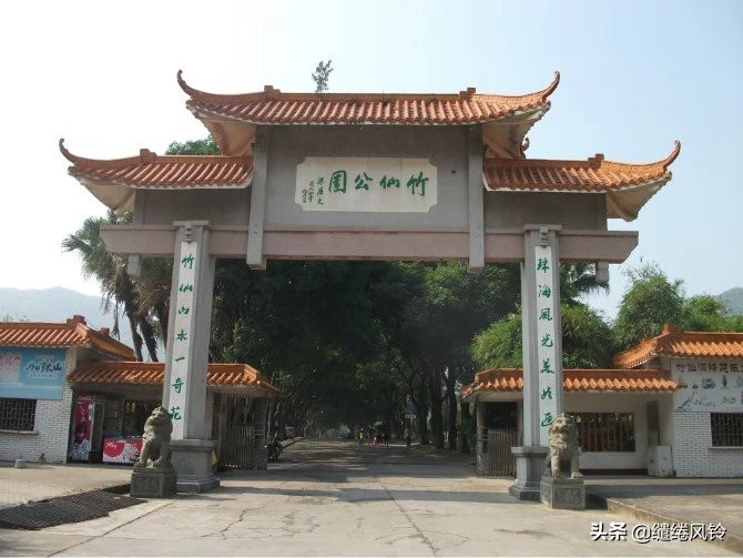 竹仙公园正门,两边立柱上的楹联是:珠海风光美如画,竹仙山水一奇花。