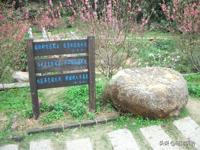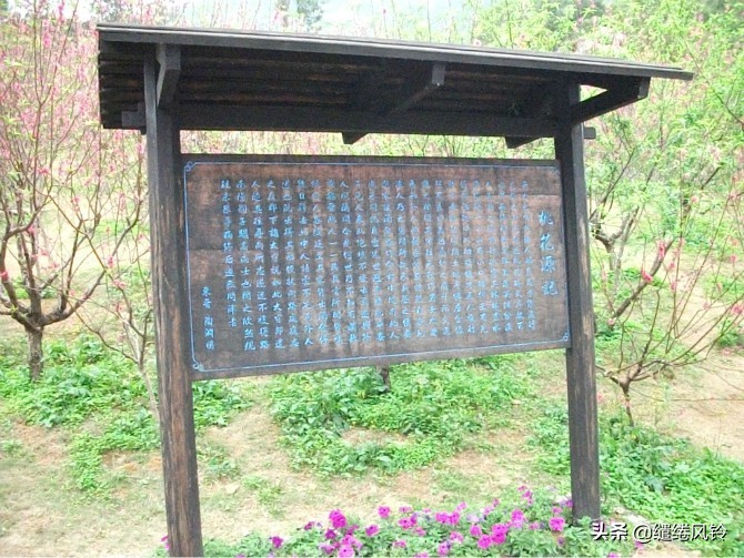 竹仙洞“桃源仙境”景区,植有数千棵各品种的桃花,大多数树龄超过9年。景区入口一侧,依次立着六块牌子,图文并茂地记载了陶渊明流传千古的名作《桃花源记》,为风景区更添几分诗意。