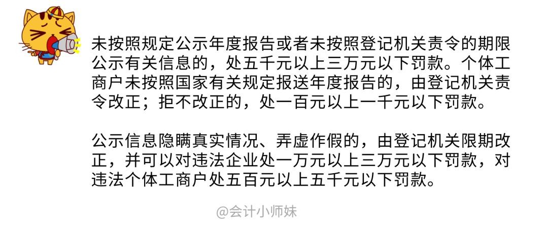 小会总结:未按规定工商年报的企业(包括个体户),除了会被罚款以外,还会被工商局列入失信黑名单,失信企业将不得参与政府招标项目、纳税信用荣誉称号评选,甚至会被限制企业纳税申报和法定代表人出入境。