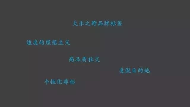 民宿产品是一个非常小众的产品,它的入住率得到保障并不需要大量的人群,我们要谈品牌营销,首先得谈品牌的定位,有了一个模糊感性的定位判断后,我们再把住宿类产品的游客类型细分为观光穷游、休闲度假、疗养以及会议商务,每个人都有不同的需求、出行方式以及消费水平。任何品牌要得到发展,得有一个精准的定位,在这样的细分下,把大乐之野的产品定位为中高收入人群的频率性休闲度假,然后根据精准定位去精准营销。
