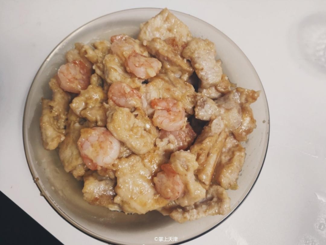 牛肉片、大虾、鱼肉粒,这三样共同组成了这道白爆三样。