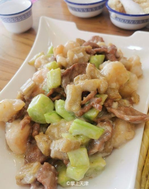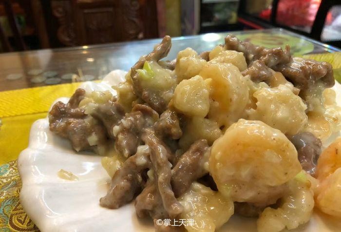 利顺德小老饭庄的油爆三仁,以前是鸡胗、肚仁和虾仁。鸡胗脆嫩,肚仁软嫩,虾仁鲜嫩,现在变成了牛肉、牛肚和虾仁。
