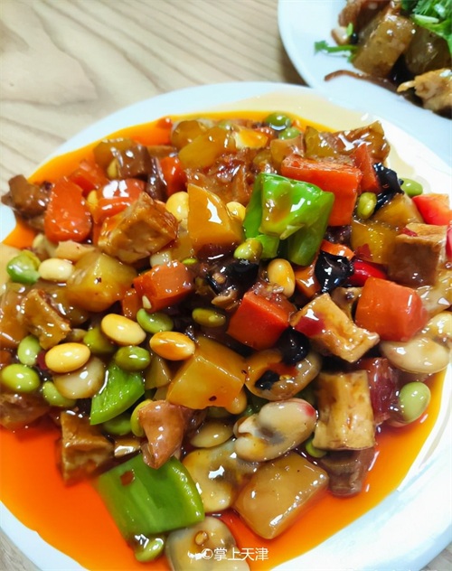 辣豆是用黄豆、肉皮、胡萝卜、土豆、香干等做成的,微辣咸鲜,适合下酒。