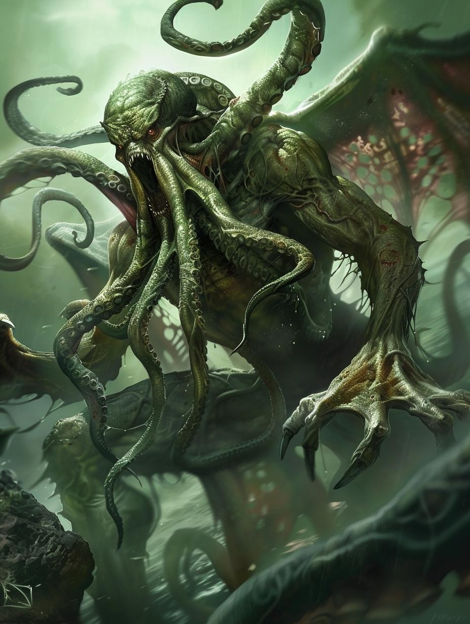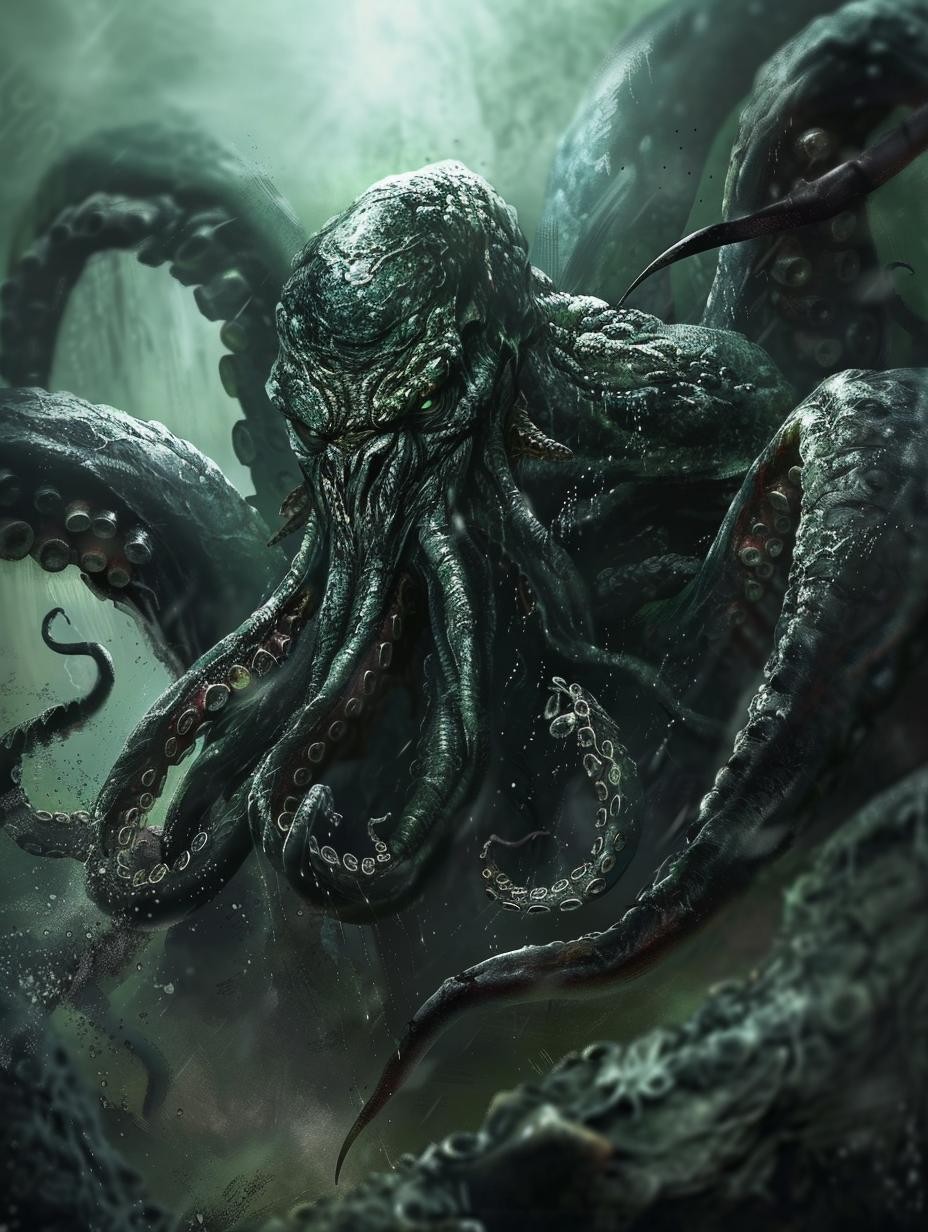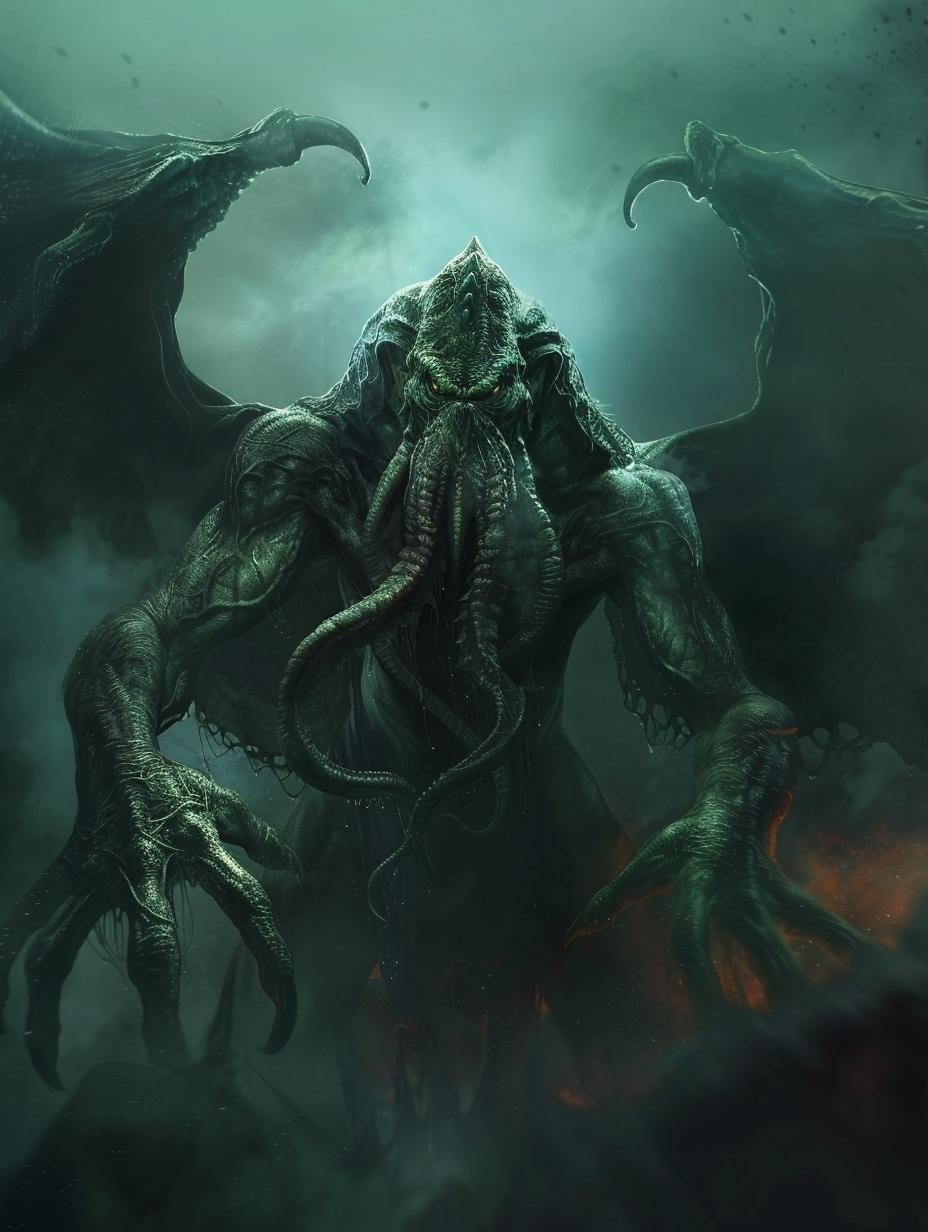 克苏鲁神话(Cthulhu Mythos)是围绕着克苏鲁及其他远古神祇(Great Old Ones)构建的世界观,充满了神秘、恐怖和对未知的恐惧。洛夫克拉夫特的作品通常涉及人类在面对宇宙中强大、无情而冷漠的存在时所产生的无力感。克苏鲁神话中,这些古老的神祇沉睡在地球的深处或宇宙的边缘,等待某一天再次苏醒,带来毁灭。