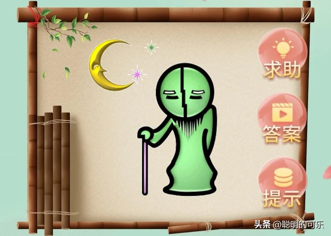 识图:月光下有路,老人拄拐行。