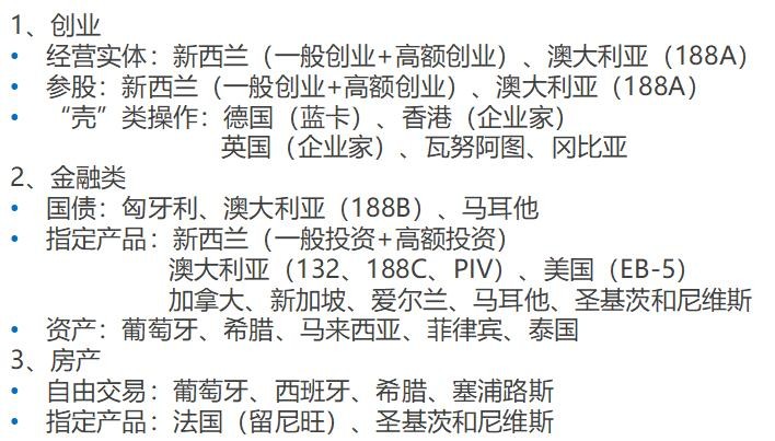投资移民:指申请人具有一定资产,并且符合其他一些限制性条件 并将资金投资到目的地国政府批准的投资基金或合适的商业项目来完成移民申请;