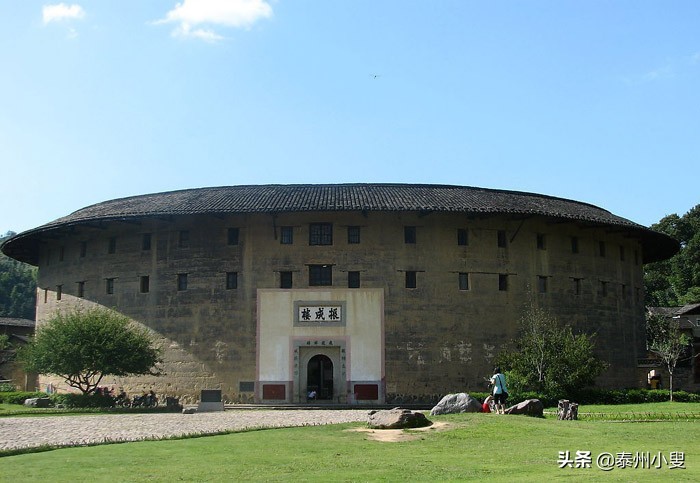 这种圆楼都由二、三圈组成,由内到外,环环相套,外圈高十余米,四层,有一、二百个房间,一层是厨房和餐厅,二层是仓库,三、四层是卧室;二圈两层有三五十个房间,一般是客房,中一间是祖堂,是居住在楼内的几百人婚、丧、喜、庆的公共场所。楼内还有水井、浴室、磨房等设施。土楼采用当地生土夯筑,不需钢筋水泥,墙的基础宽达三米,底层墙厚1.5米,向上依次缩小,顶层墙厚也不小于0.9米。然后沿圆形外墙用木板分隔成众多的房间,其内侧为走廊。