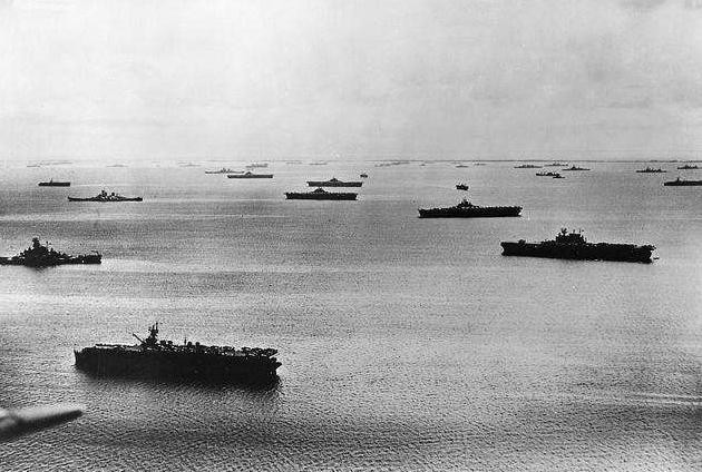 1944年10月20号“莱特湾”海战正式打响,美军投入兵力:17艘 航空母舰,18艘护卫航空母舰,12艘 战列舰,24艘 巡洋舰,141艘 驱逐舰,其它舰只、 鱼雷艇、 潜艇和约1500架飞机。