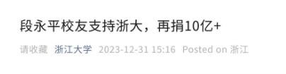 段永平校友支持浙大,再捐10亿+-浙江大学官微-2023-12-31