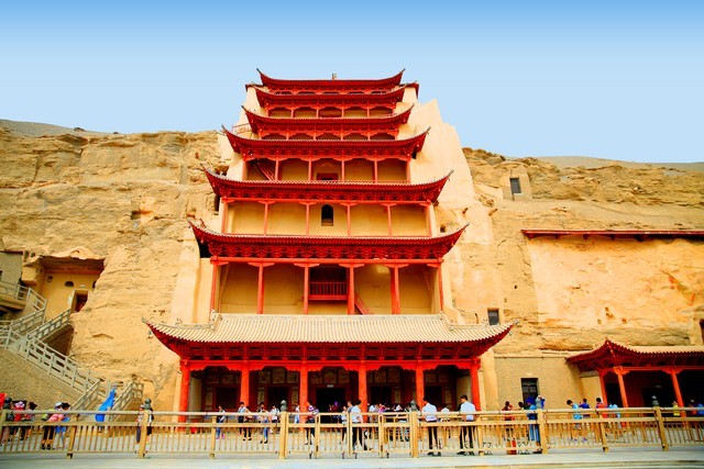 丝绸之路上的佛教艺术宝库,现存735个洞窟、4.5万平方米壁画,被誉为“东方卢浮宫”。