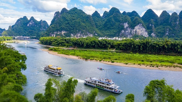 “桂林山水甲天下”,漓江两岸的喀斯特峰林与田园风光构成水墨画卷,是中式山水审美的代表。