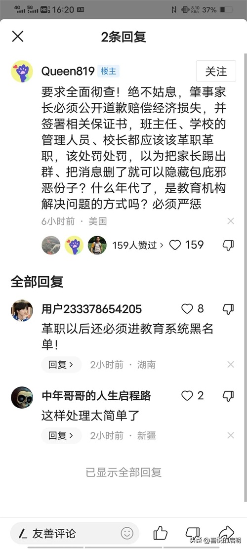 更有网友评论:教育的失败,根子坏了救不活了?我想不通的是为什么出了事学校第