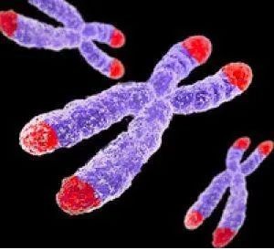 染色体上的端粒(红色部分)