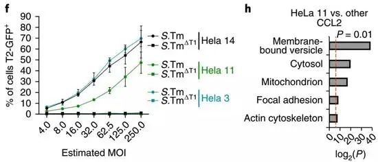 左图:不同细胞的感染复数 右图:不同细胞感染后蛋白表达的差异