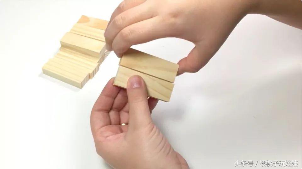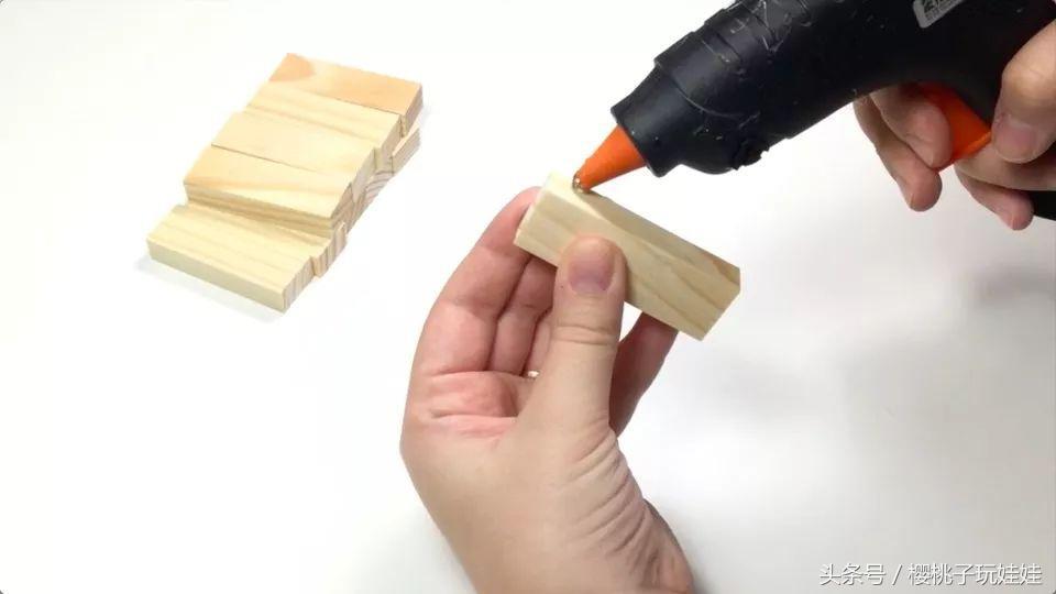材料和工具:小木块,热熔胶,泡沫海绵,布,填充棉花,万能胶。