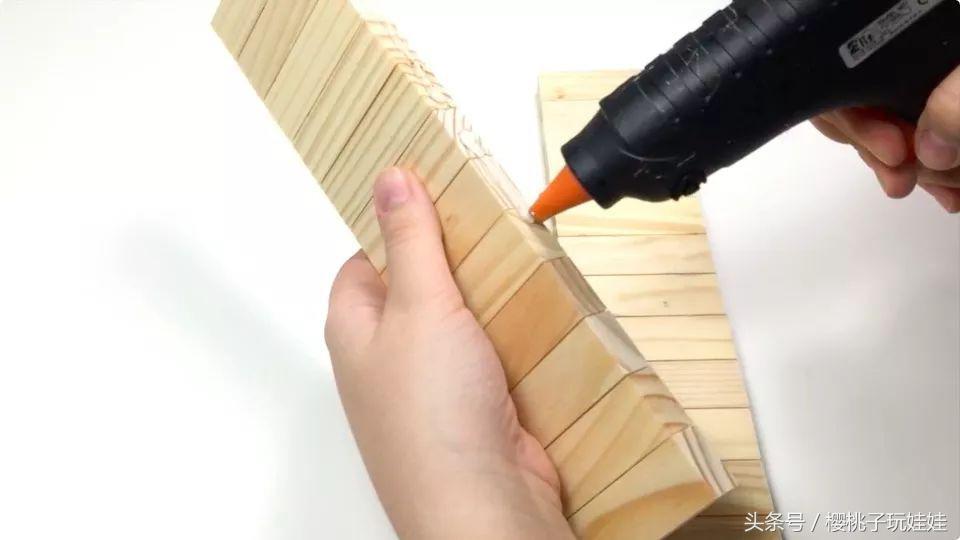 8、拼一个床架,外延要比床板大,拼好后将床板和床架黏在一起。