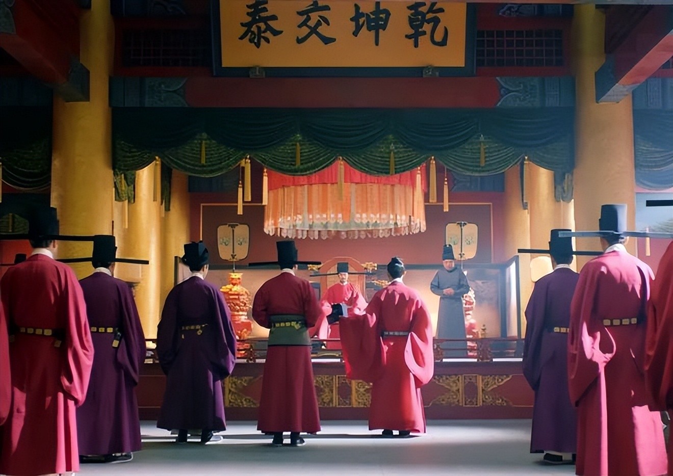 最后是常参。唐前期按制度"凡京司文武职事九品已上,每朔、望朝参;五品已上及供奉官、员外郎、监察御史、太常博士,每日朝参"。每日朝参就是常参,一般不用摆列仪仗,也无大排场,是真正的行政日。参加者称常参官,人数少而级别高,都是五品以上职事要重者。常参则在宣政殿再后的便殿紫宸殿举行。