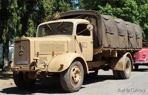 这个是德军二战期间的第二种常用卡车,由梅赛德斯-奔驰公司在四十年代初期推出,和欧宝“闪电”卡车的定位一样,也是用来运送货物、士兵和牵引火炮的,并且运兵型还增加了帆布车顶,在恶劣天气中能保护车内的士兵。