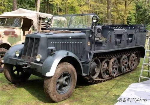 上世纪三四十年代,德国属于世界上的半履带车大国,不仅有作战的、还有运兵的、搭载火炮的以及牵引火炮的半履带车,其中常见的就是Sd.Kfz.6型5吨级半履带牵引车。