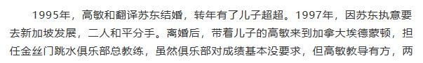 他们夫妻二人理念不合,男方执意要去新加坡发展。而孩子,就一直跟着高敏。为了维持母子俩的生活,高敏就带着孩子去到了加拿大当某俱乐部的总教练。