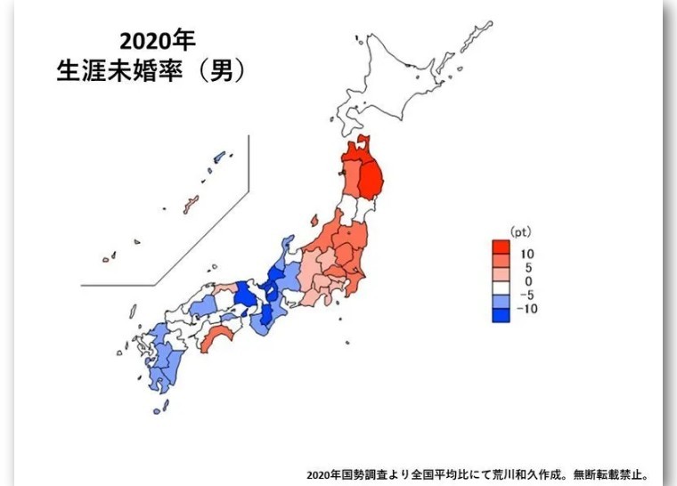 终身不结婚的男人,东日本更多
