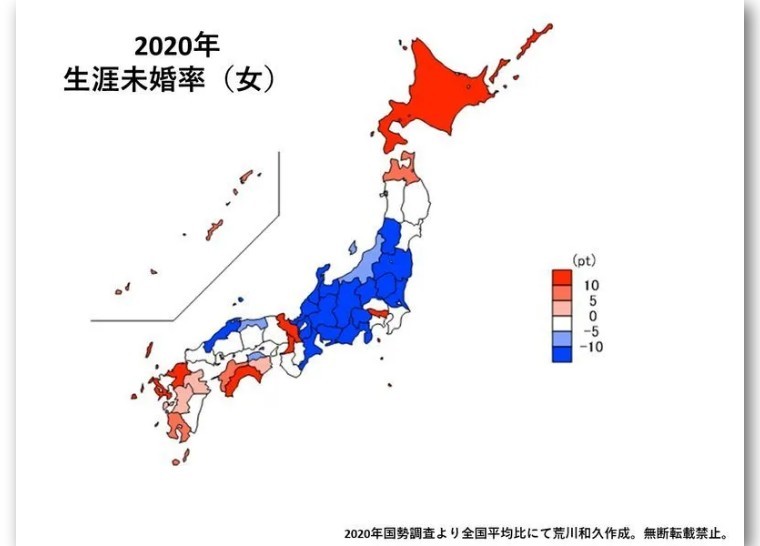 各家总结的角度,真是一绝,比如东日本不结婚的男人多,西日本不结婚的女人多。