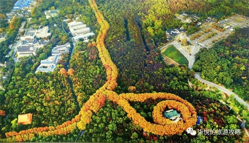据说当年是因为宋美龄非常的喜欢梧桐树,而蒋介石为了讨夫人的欢心,就特地把整个城市都种满了梧桐树,而且到了每年的秋天的时候,如果从上方看的话则会看到梧桐树的叶子都变成了亮眼的金黄色,而沿着这些金黄色看去,就会发现这些美丽的梧桐树就像一条金色的项链,然后两圈的梧桐树就像水滴一样,中间还有个绿色的房子就跟宝石一样,而那座房子就是蒋介石跟宋美龄居住的地方,那个被梧桐树包围的地方就是当地非常有名的钟山美龄官。