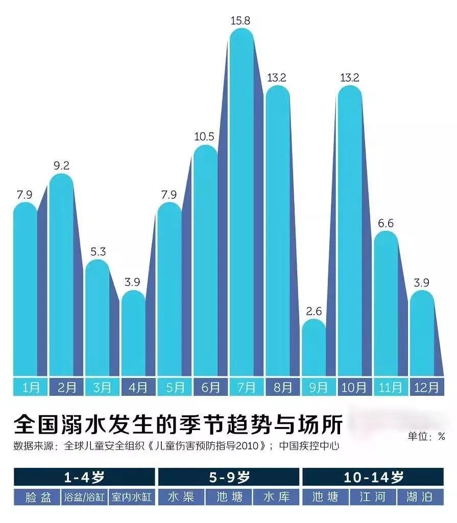而这样的煎熬与挣扎,在每年的6月、7月和8月都会上演无数次。全球每年因溺水失去生命的超过37万人,而我国就有近3.9万人因溺水而意外死亡,死亡率高达8.77%。其中又以14岁以下的未成年人占大多数,约为56.58%。他们并非因为不会游泳而失去了年轻的生命,往往是由于脚突然抽筋或被水草缠脚这样的意外溺水身亡。