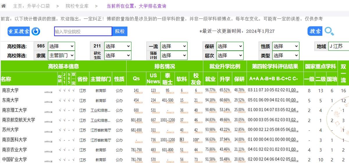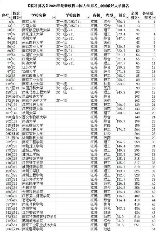 总之,江苏高校2024年全国排名的揭晓,为江苏高等教育事业注入了新的活力和动力。我们坚信,在不久的将来,江苏高校将继续书写辉煌的篇章,为培养更多优秀人才和推动社会进步做出更加卓越的贡献。