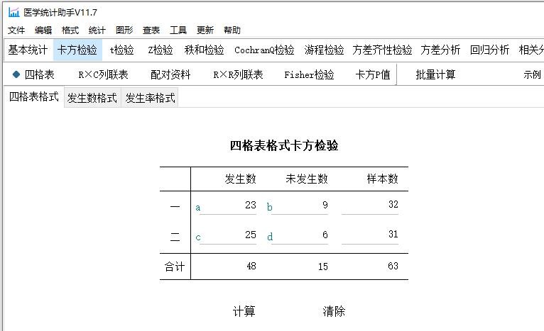 手工计算容易出错,大型统计软件操作复杂,个人推荐使用医学统计助手或卡方检验计算器完成卡方检验。