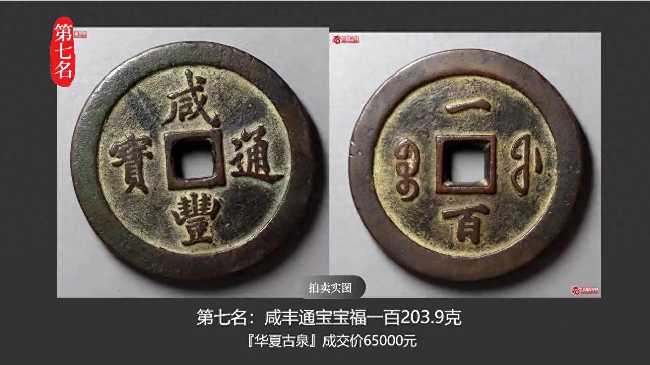 ·第七名:咸丰通宝宝福100203.9克,华夏古泉成交价65000元。