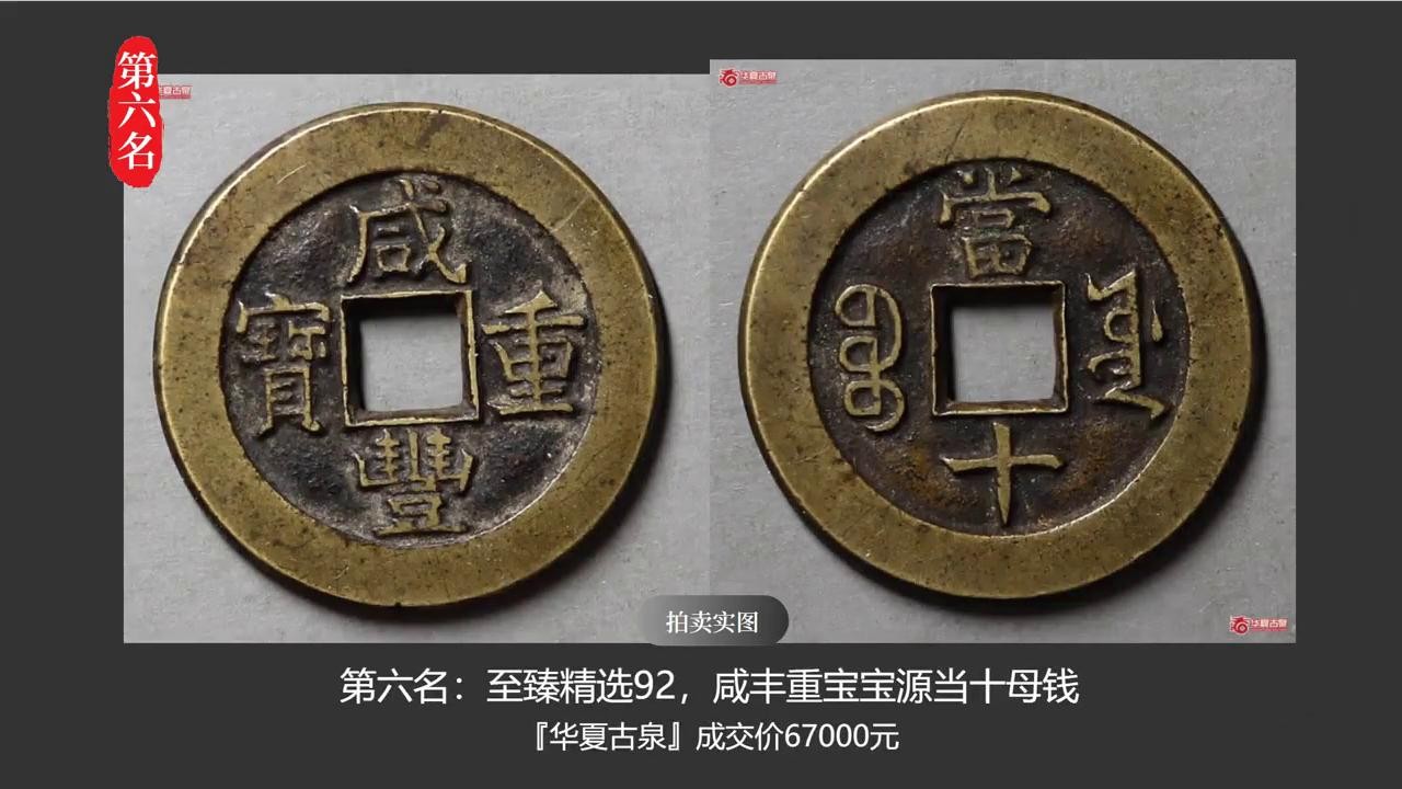 ·第六名:至臻精选92,咸丰重宝宝源当十母钱,华夏古泉成交价67000元。